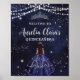 Personalize esta adorável noite estrelada de aniversário da quinceañera, sinal de boas-vindas, poster, com sua própria redação fácil e rápida. Basta clicar no botão "Editar usando ferramentas de Design para" para modificar o texto, o texto, o estilo da fonte, o tamanho da fonte e a cor da fonte. Você também pode adicionar ou remover texto e mover ou remover imagens. A princesa e a coroa são móveis, redimensionáveis, duplicáveis e removíveis, permitindo que você personalize a design para se adequar à sua ocasião. Perfeito para Quinceañeras, Doce 16, 18 festas de aniversário, Bat Mitzvahs, e muitas mais celebrações! Também disponível como download digital instantâneo. Itens correspondentes estão disponíveis no repositório! c) O Feliz Cat Studio