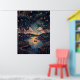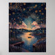 Poster Starry Night River no estilo Pointillist
