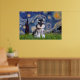 Starry Night, por Vincent Van Gogh, uma das obras-primas mais amadas do mundo, foi adaptada aqui para incluir um filhote Schnauzer com um colarinho vermelho e etiqueta de ouro.