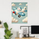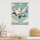 Num céu balbucioso cheio de nuvens fofinhas, um avião animado e alegre voa com um sorriso amigável. O avião, pintado em tons suaves de azul e branco, apresenta detalhes lúdicos como nariz vermelho, boné azul e decorações em forma de estrela em suas asas. Esta maravilhosa trabalho de arte de berçário captura a imaginação, evocando um senso de aventura e alegria, perfeito para inspirar mentes jovens. As pinceladas suaves e texturizadas e as cores pastéis criam uma atmosfera calmante e convidativa, fazer-a como uma adição ideal ao quarto de qualquer criança.