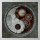 Esta ilustração única da yin yang, a steampunk, apresenta velhas engrenagens enferrujantes e rebites de metal sólido. Um lado do yin yang parece ser o dentro de uma máquina complexa, enquanto o outro lado tem a aparência de uma peça sólida de aço. As texturas metálicas e as cores enferrujantes dão este símbolo para equilibrar uma forte sensação industrial. Esta design única é uma bela e na moda de interpretação deste símbolo antigo.