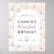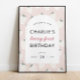 É o primeiro aniversário de morango de alguém! Bem-vindos aos seus amigos e entes queridos para comemorar a primeira festa de aniversário do seu morango com este adorável pastel cor-de-rosa sinal de boas-vindas de morango poster.