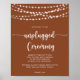 Esta corda ilumina a poster de cerimônia desconectada de terracota é perfeita para um casamento ou chá de panela moderno. A design apresenta belas luzes de cordas pintadas manualmente em um fundo de terracota.