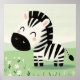 Um poço de zebra brincalhão fica em um campo de margaridas, suas listras contrastando brincalhão com a vibrante grama verde. Os olhos largos da zebra e o sorriso alegre irradiam pura alegria e inocência. O trabalho de arte é renderizado em uma paleta de cores brilhante e alegre, criando uma sensação de energia e otimismo.