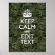 Sua personalização fica calmo dizendo em uma decoração de camuflagem digital em estilo florestal verde. Um estilo "Manter Calmo" personalizado dizendo em um presente gentil. Humorístico ou caprichoso experimente suas palavras criativas em duas linhas editáveis de texto. Lembre-se de usar letras CAPITAL para obter melhores resultados. Use o link "Perguntar a este Designer" para entrar em contato conosco com suas solicitações especiais de design ou para obter assistência com suas necessidades de personalização.