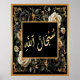 SubhanAllah Caligrafia islâmica árabe Dourada Flores de Rosa preto Poster