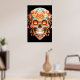 Sugar Skull design, in bright colors, on a wall poster. Celebrate Day of the Dead, November 1-2.