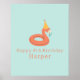 Poster summer flamingo float kids birthday pool party