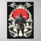 Poster Sumo Wrestler In Red Moon, Japanese Anime Tattoo