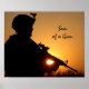 Military soldier with weapon in silhouette, with sun shining through in the background. Dramatic war photo courtesy of the Department of Defense. Funny play on words.