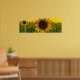 Original image of a sunflower field in Kingman, Kansas, showing a close-up view of a sunflower with other sunflowers in the background — and the golden sunlight of dawn.