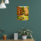 Poster Sunlit Stone Courtyard Garden Path Watercolor Art