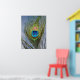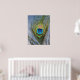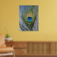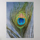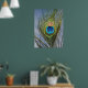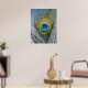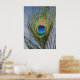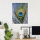 Imagem bem próxima de um poster de pena de pavão. O sol que reflete a pena faz-a brilhar.
