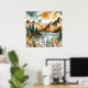 Poster Sunny Rustic Boho Nature Pattern Mountain Lake