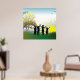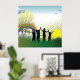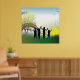 Uma cena de crianças em pé no nascer do cheio e um arco-íris. Esta design parece realmente eficaz nestes Poster