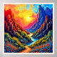 Dive into the breathtaking spectacle of this fantasy mountain valley artwork. This highly detailed, unique digital print captures the electric beauty of an unreal landscape, where fiery red peaks meet cool, deep blue shadows under a dramatic sunset. The composition, featuring a winding river and colorful wildflowers, is an emotionally engaging visual feast. Initially created by AI, a skilled artist then meticulously enhanced the design for superior uniqueness and creativity. This SEO optimized print is a perfect statement piece for modern decor, injecting bold color and wonder into any space. Place your order today and embrace the joy of owning this stunning, unforgettable scene!