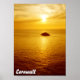 Vista do pôr do sol ouro de Newland Island de Pinteiro Point, perto de Padstow, Cornwall, Inglaterra.