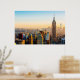 Sol se instalando sobre Nova York lançando uma luz de ouro sobre a cidade.