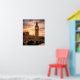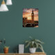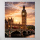 A warm and iconic London scene captured at golden hour, with the clocktower glowing under the sunset and a red bus crossing the bridge. This artwork highlights the magic of London’s urban landscape, blending historic architecture with the rhythm of modern city life.