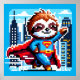 Poster Super Sloth Funny Pixel Art Hero Cityscape Design