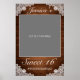 Suporte de foto de aniversário de 16 anos com moldura de pôster. Estilo rústico com fundo de tábuas de madeira e decoração de renda branca. Mais itens estão disponíveis neste estilo em nossa loja. Você pode editar ainda mais o design, alterar cores, fontes e adicionar texto extra clicando no link "personalizar ainda mais".