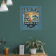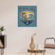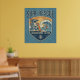 Decorate your walls with this vintage surf rescue poster featuring a 1950 lifeguard patrol crest. The retro illustration showcases a classic beach tower, a massive ocean wave, and a nautical compass in a distressed sunburst style. This high-quality print is perfect for adding a mid-century coastal aesthetic to your home, office, or beach cottage. It is an ideal piece of wall art for surfers and fans of California beach culture.