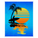 Surfando arte de surfista em pé na praia e um nascer do sol sobre a água.