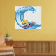 Um surfador cavalgando seu conselho em uma grande onda. Esta design parece realmente eficaz nestes Poster