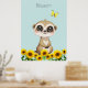 Cartaz de suricata bebê fofa, girassóis e borboleta Blossom. O texto pode ser personalizado. As suricatas simbolizam valores familiares, consciência e boa sorte.