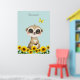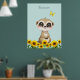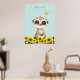 Bebê suricata fofo, girassóis e pôster de borboleta em flor. O texto pode ser personalizado. As suricatas simbolizam valores familiares, consciência e boa sorte.