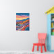 Dive into a world of vibrant color with this surreal mountain landscape painting. The artwork features rolling hills blanketed in richly colored flora—pinks, oranges, and blues—under a dramatic sunset sky with a crescent moon and stars. The expressive, brushstroke style and bold, saturated palette make this a captivating piece of wall art, perfect for adding a bohemian or maximalist touch to any modern space. Ideal for those who love abstract nature and dreamy, imaginative scenes.