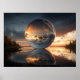 Poster Surreal Reflective Sphere With Sunset Clouds Over