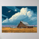 Poster Surreal Sci-Fi Farm with Rocket Launch Illustratio