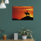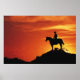 PINTURA DE UM COWBOY SOZINHO NO HORSEBACK COM O SOL ATRÁS DELE