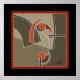 Arte gráfica de duro com efeito textural, o sussurro de cavalo e de homem como um espírito. As cores sudoeste suaves e a influência nativa americana. Arte original de Margaret Loftin Whiting.