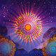 "Solar Whispers no Céu" O Sol. Uma representação surreal do Sol, sua energia vibrante sussurrando segredos para o universo através de intrincados padrões e geometria sagrada. As cores vermelha, laranja, amarela e azul são equilibradas e criam um design de outra presença no mundo.