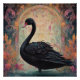 Um cisne negro retratado contra um fundo macio e turvo. As cores naturais melhoram a aparência semelhante à vida.
