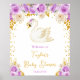 Poster Swan Roxo e Rosas Dourados Chá de fraldas Bem-vind