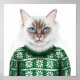 Esta bela ilustração com aquarelas é de um gato de Pássaro Longhair em um suéter de Natal feio.