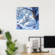 A sweet winter foxes themed poster. A sweet illustration of two white foxes, a mama and baby cuddling under a tree in the snow.
