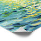 This heavily textured painting depicts the Sydney Harbor Bridge over vibrant blue water, set beneath a dramatically swirling yellow sun and sky in the style of Van Gogh.
