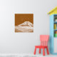 Uma ilustração de Syme hut no Pico de Fathoms, com o Monte Taranaki ao fundo. Esta design é desenhada num monocromo castanho e tem as estrelas Matariki sobre ela no céu. Um design para qualquer um que adora caminhar e vagar na Nova Zelândia.