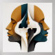 Poster Symmetrical Abstract Portrait in Ochre and Slate