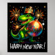 Poster T Rex Happy New Year 2026 Disco Ball Fireworks Tee