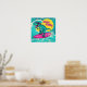 Poster T-Rex usando óculos de sol e andando em uma rosa n