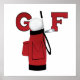 Um design de golfe em T-shirts de golfe, capuzes, canecas, mousépias, bolsas e muito mais com um saco de golfe vermelho, clube, bola de golfe, e texto que diz "Golf".