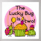 O inseto sortudo é dois! T-shirts de segundo aniversário de Cupcake, fatos-calças, cartões, autocolantes, botões de aniversário, ímanes, sacos de tote e outros segundos aniversários com cupcakes de aniversário coloridos, uma vela de aniversário, um balão e joias de sorte!