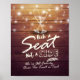 Cartaz de Sinal de Casamento Escolha um Assento Não um Lado - Letreiro Elegante, Taças de Champanhe Vintage e Luzes de Corda em Fundo de Madeira Rústica.