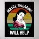 Talvez Jurar Ajude. Este sarcástico engraçado de vintage que diz acessório é excelente para qualquer um que tenha um senso de humor atrevido e atrevido, aprecie sarcasmo, e goste de jurar e xingar. Esta hilária design de citação engraçada faz seus amigos rirem. Perfeito para vestir a uma festa! Possui uma dona de casa humorística de 1950 contra um pôr do sol angustiado vintage.