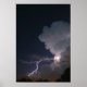 Esta tempestade desenvolveu-se à noite, e produziu várias espetaculares exibições de raios! Este raio pousou uma grande distância da área da chuva. As nuvens estão acesas e coloridas por três fontes de luz: o raio, tanto dentro como fora, o brilho azul do último crepúsculo no oeste, e as luzes da cidade laranja.